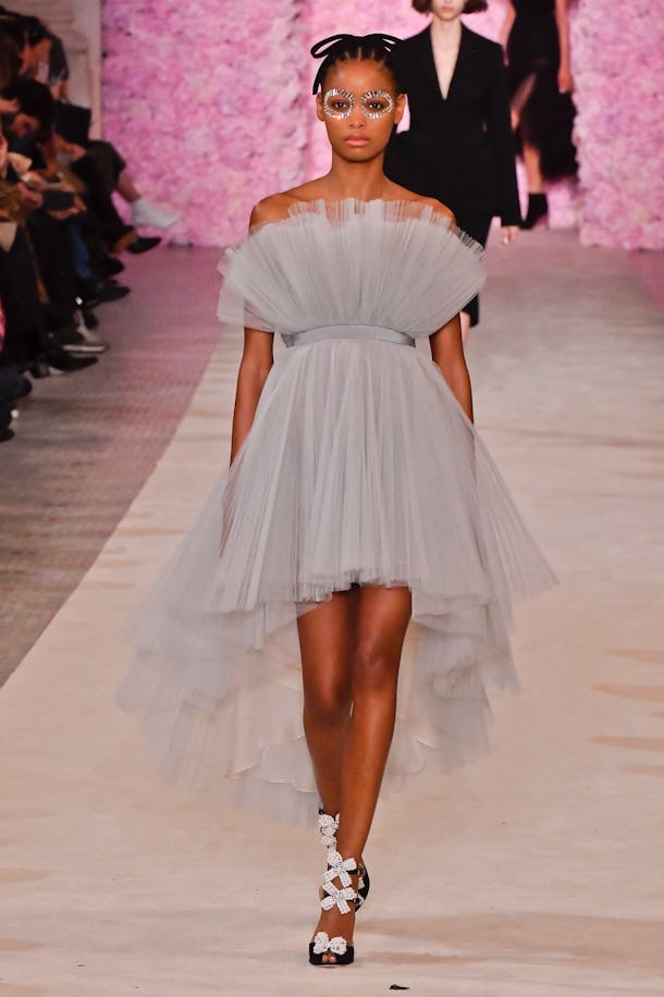 A much more romantic fabric, tulle was all over 2021 runways in myriad ways. Gimabattista Valli showed voluminous dresses with layers and layers of tulle; meanwhile, Fendi and Rick Owens went a more tailored and sheer route with their tulle creations. Whatever way you decide to wear it, be bold with it. You're wearing the stuff ballgowns are made out of.