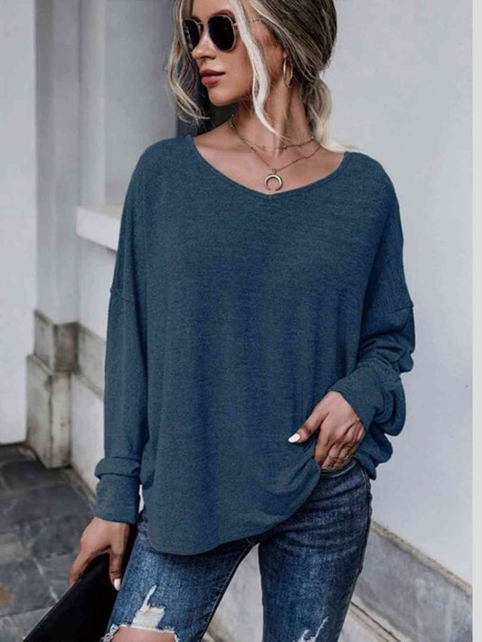 This long-sleeved ribbed blouse is a versatile wardrobe staple that combines comfort and style effortlessly....