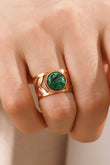 18k Gold Plated Malachite Leaf Ring