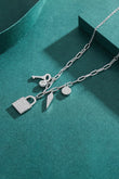 925 Sterling Silver Lock & Key Zircon Pendant Necklace