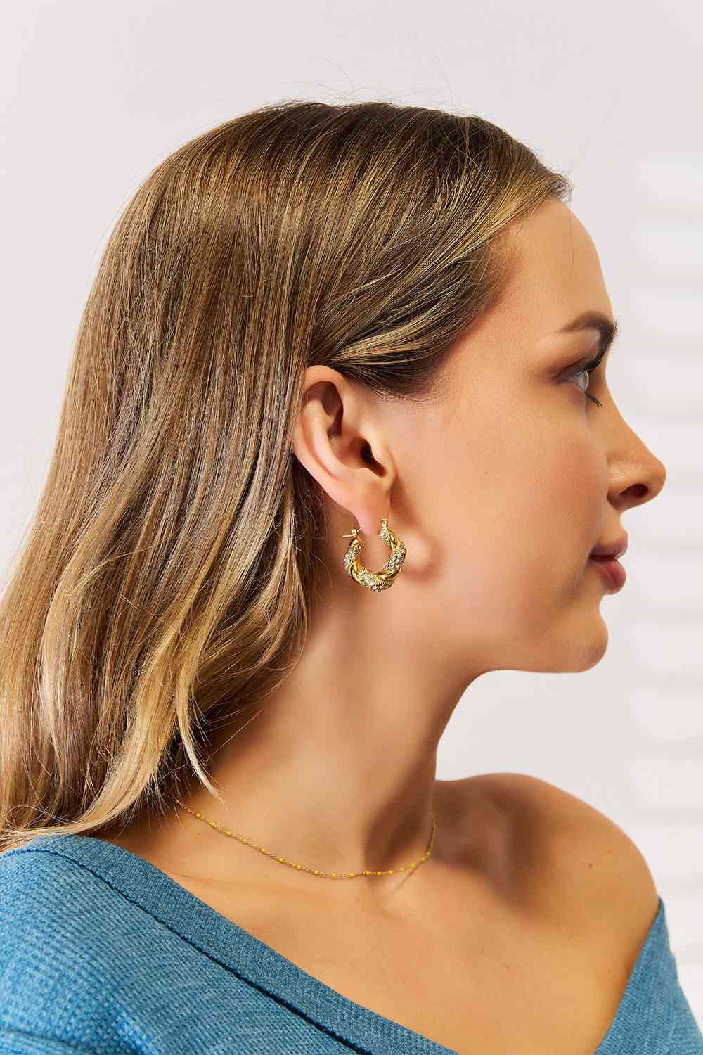 Adored Rhinestone Twist Detail Hoop Earrings