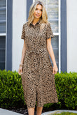 Animal Print Short Sleeve Belted Dress