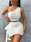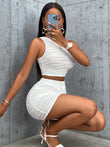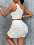 Asymmetrical Neck Tank Top and Skirt Set