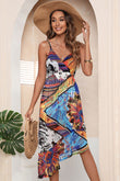 Asymmetrical Print Surplice Neck Spaghetti Straps Dress