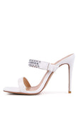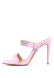 High heels Stiletto with dual strap and open square toe. These heels feature a metal ball studded strap with cushioned sole.
