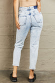 These jeans offer a comfortable and flattering fit, hugging your curves in all the right places. The high-waisted design elongates your silhouette while the light acid wash and subtle distressed details add a touch of edgy flair. Dress them up with heels and a blouse for a night out or pair them with your favorite sneakers and a tee for a chic, casual look. Embrace style and comfort with these must-have skinny jeans!