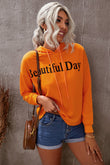 BEAUTIFUL DAY Graphic Drawstring Hoodie