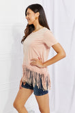 BiBi Empowering Expression Mineral Wash Fringe Hem Tee