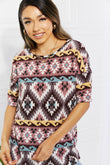 This patterned tee is the perfect pop of color to add to your spring and summer closet. The beautiful top is painted in a perfect palette which will pair with neutrals or coordinating shades. The long length and oversized fit not only make the tee functional, but also make it simple to style.