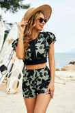 Botanical Print Flutter Sleeve Two-Piece Swim Set