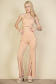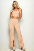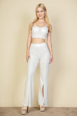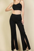 - Bustier Crop Top & Front Slit Wide Leg Pants