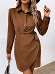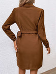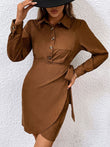 Button-Down Collared Neck Long Sleeve Side Tie Dress
