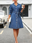 Button Down Long Sleeve Denim Dress