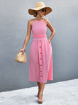 Buttoned Halter Neck Frill Trim Midi Dress