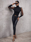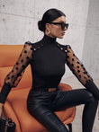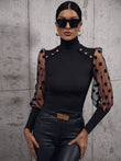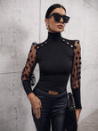 Buttoned Lantern Sleeve Turtle Neck Blouse