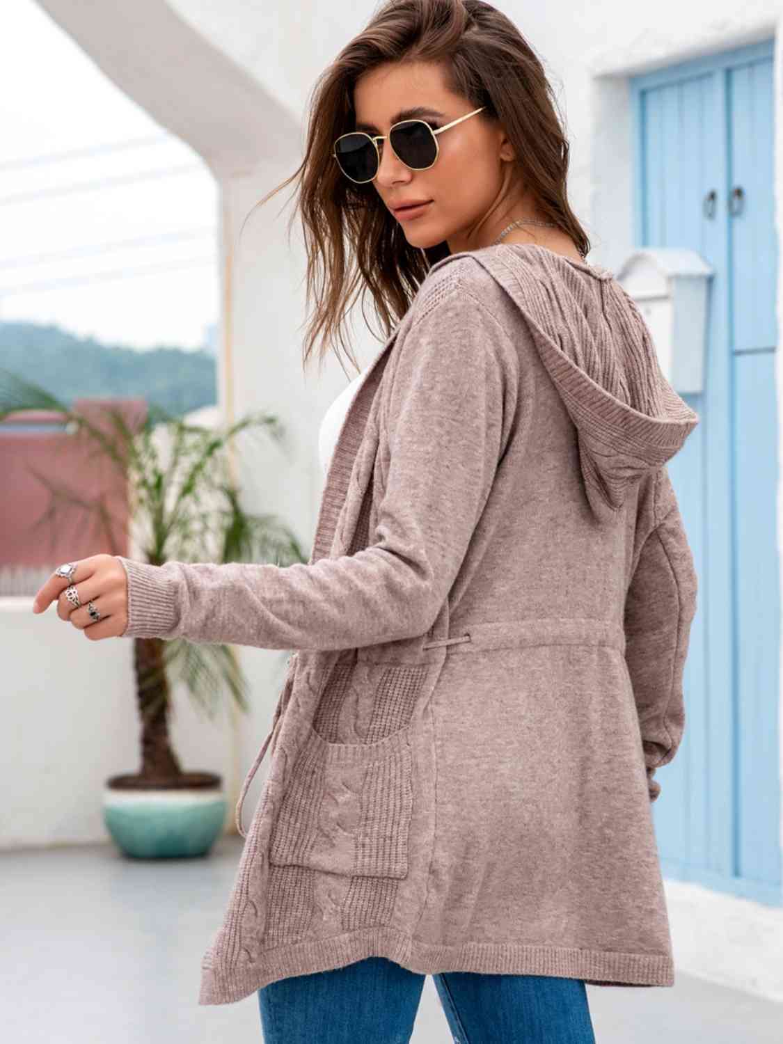 Cable-Knit Drawstring Hooded Cardigan
