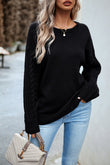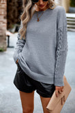 Cable-Knit Round Neck Drop Shoulder Sweater