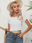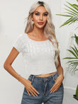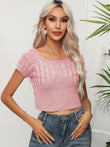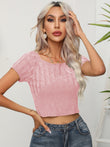Cable-Knit Round Neck Short Sleeve Knit Top