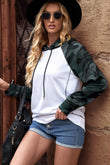 Camouflage Raglan Sleeve Exposed Seam Hoodie