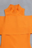 Cold-Shoulder Mock Neck Slit Midi Dress
