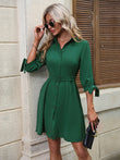 Collared Neck Button-Up Three-Quater Sleeve Dress