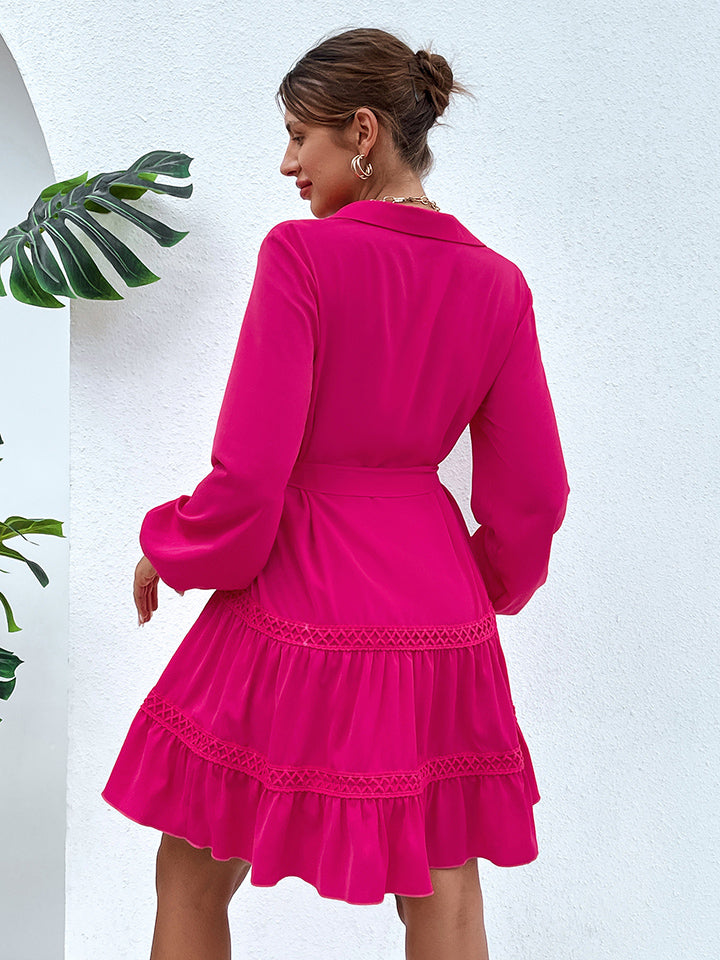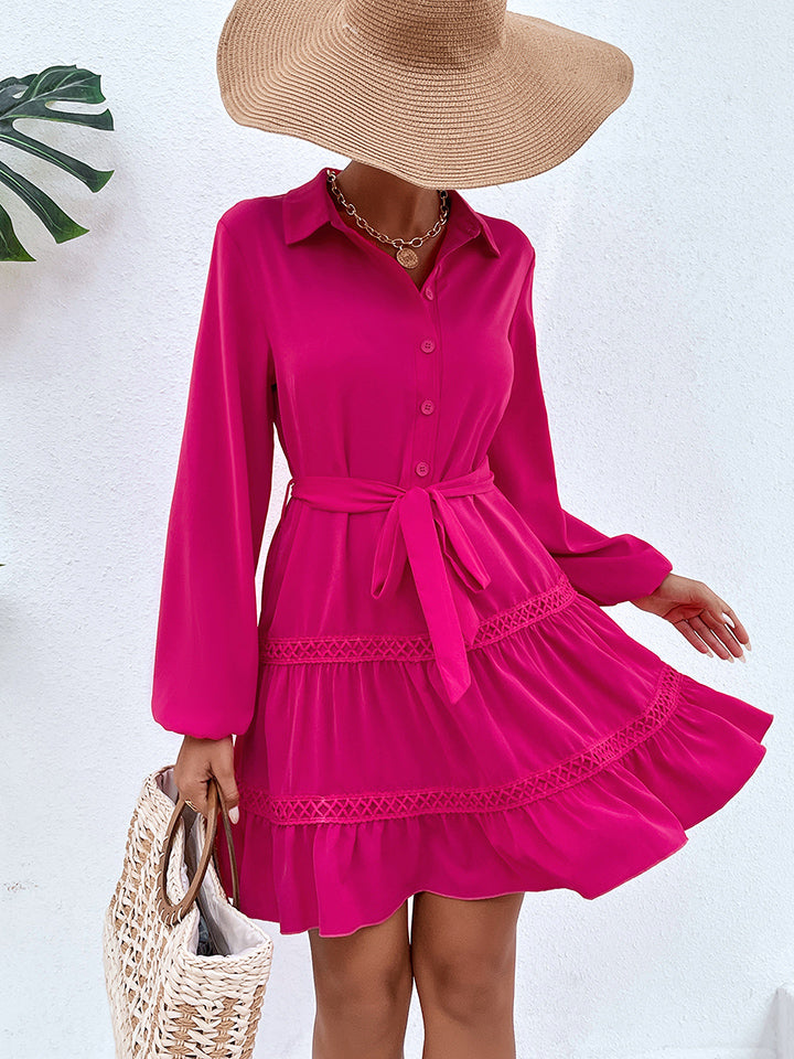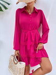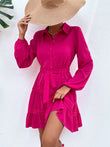 Collared Neck Tie Waist Buttoned Dress