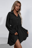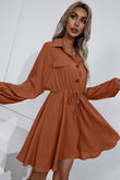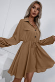 - Features: Long sleeve, batwing sleeve, elastic waist, drawstring, pocket, button front