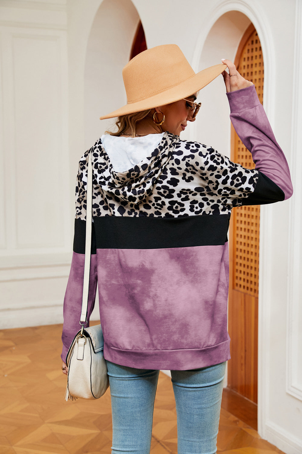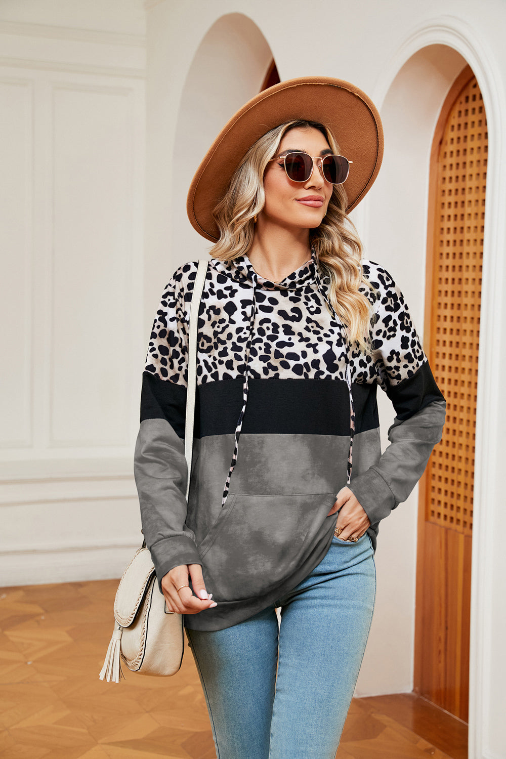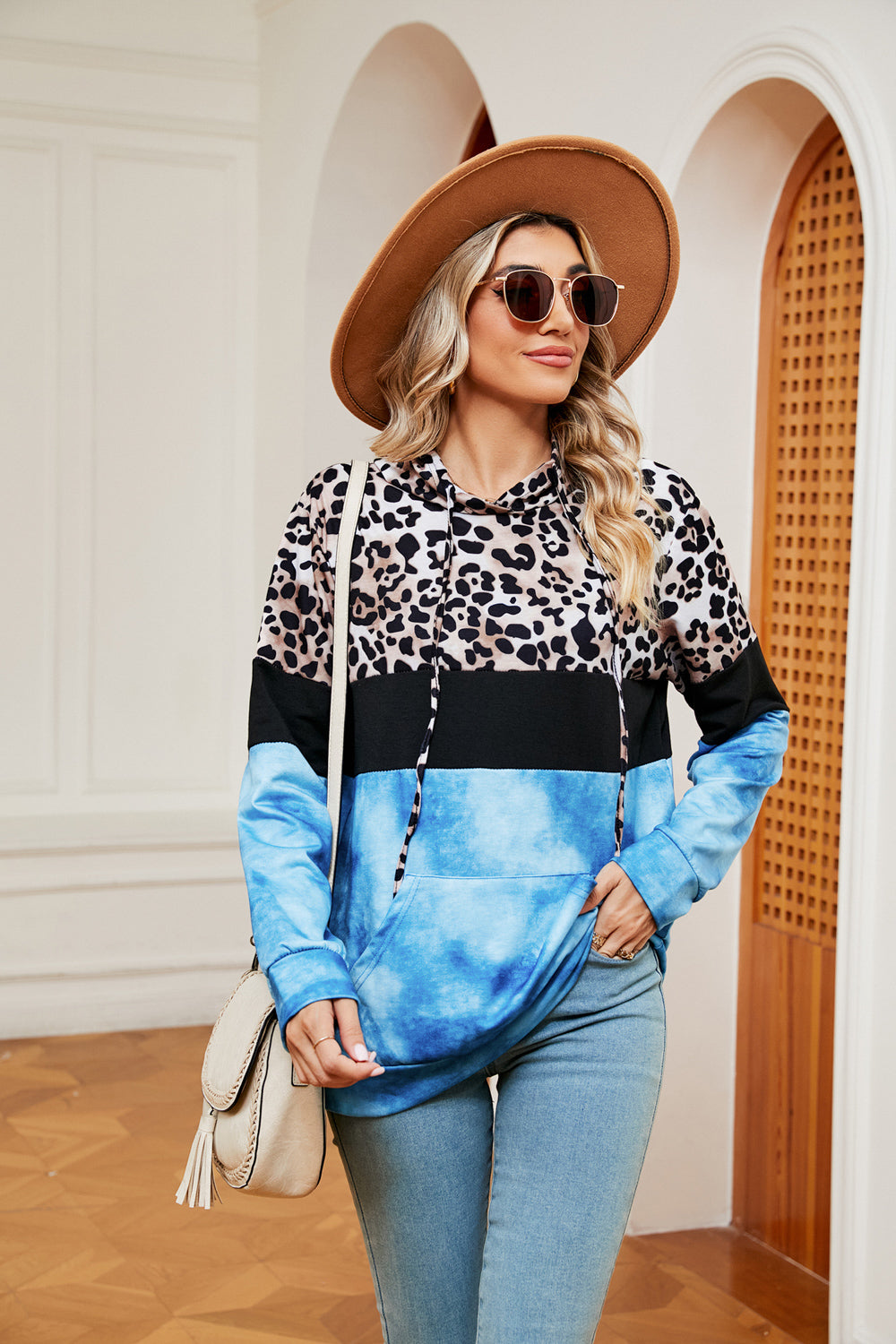 Color Block Drawstring Long Sleeve Hoodie