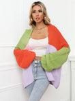 Color Block Open Front Balloon Sleeve Longline Cardigan