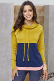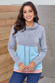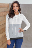 Color Block Raglan Sleeve Drawstring Sweatshirt