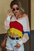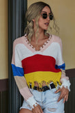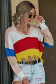 Color Block V-Neck Waffle Knit Cropped Sweater
