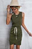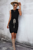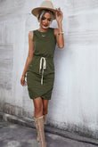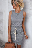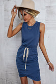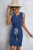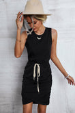 Contrast Drawstring Waist Sleeveless Mini Dress