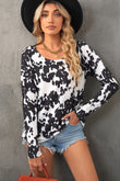 Cow Print Round Neck Long Sleeve Top