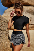Cropped Tee and Printed Swim Skort Swim Set