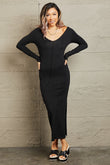This dress showcases a flattering V-neck design that accentuates your neckline and adds a touch of sophistication. The bodycon silhouette effortlessly highlights your curves, while the merrow detailing adds a unique and intricate touch to the overall look. Whether you're attending a formal event or a special evening out, this dress is the perfect choice to make a lasting impression.
