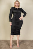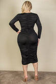 Curvy Plus Size Ruched Long Sleeve Midi Dress