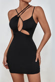 Cutout Asymmetrical Neck Ribbed Dress