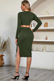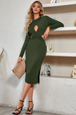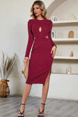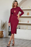 Cutout Crisscross Round Neck Long Sleeve Dress