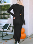 Cutout Round Neck Long Sleeve Slit Maxi Dress