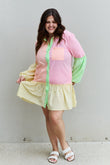 Davi & Dani Flying Colors Full Size Colorblock Long Sleeve Shirt Dress