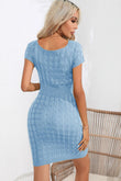 Decorative Button Round Neck Short Sleeve Sweater Dress