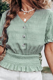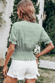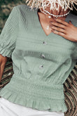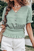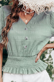Decorative Button V-Neck Flounce Sleeve Peplum Top
