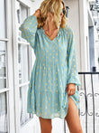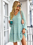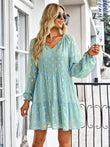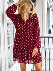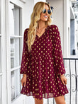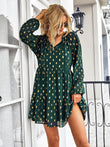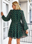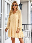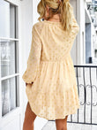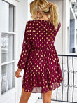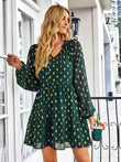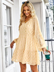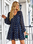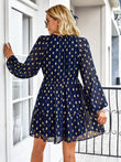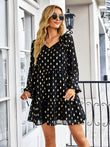 Dotted Tie-Neck Frill Trim Tiered Dress
