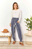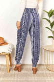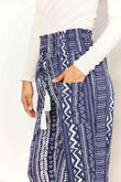 These high-rise pants feature a stylish geometric print, adding a touch of modernity. The addition of tassels adds a fun and playful element to the pants. With their long length, they offer a sleek and elongating look. The pants also come with convenient pockets, adding both functionality and style. These geometric print tassel high-rise pants are a versatile addition to your wardrobe, perfect for both casual and dressy occasions.