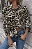 Double Take Leopard Roll-Tap Sleeve Shirt