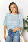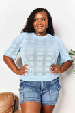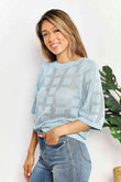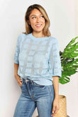 This solid knit top features a round neckline and half sleeves, providing a classic and versatile look. The ribbed trim adds texture and visual interest to the top, making it a stylish choice. With its regular length, it can easily be paired with different bottoms for a comfortable and fashionable outfit.