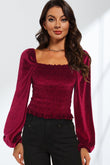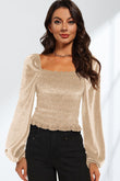 Double Take Smocked Square Neck Long Sleeve Blouse