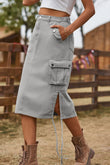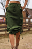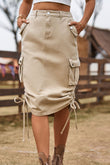 Drawstring Denim Cargo Skirt