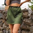 Drawstring Straight Hem Denim Mini Skirt with Pocket