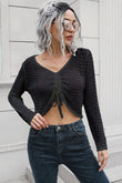Drawstring V-Neck Long Sleeve Knit Top